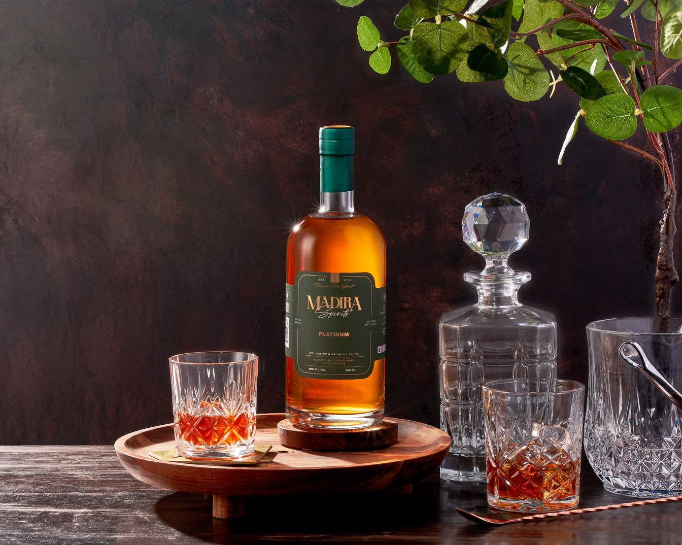 Madira Platinum is our top of the range, ultra premium small batch and handcrafted spirit inspired by centuries old Indian recipes. It has a dark colour, spiced flavour and has unrivalled smoothness. Madira Platinum is a class above the rest. A perfect entertainer, very sessionable and smooth as silk. Enjoy responsibly.